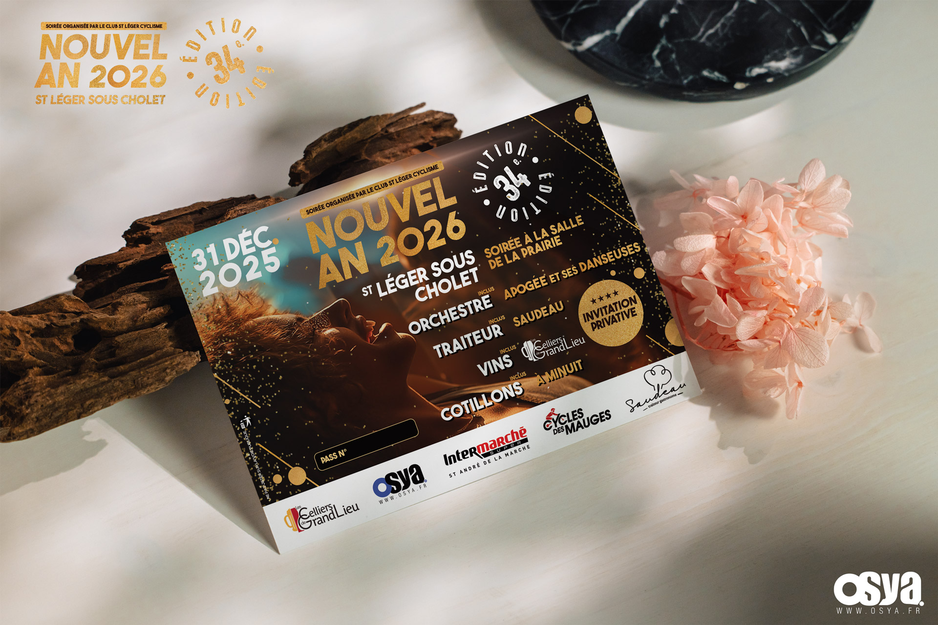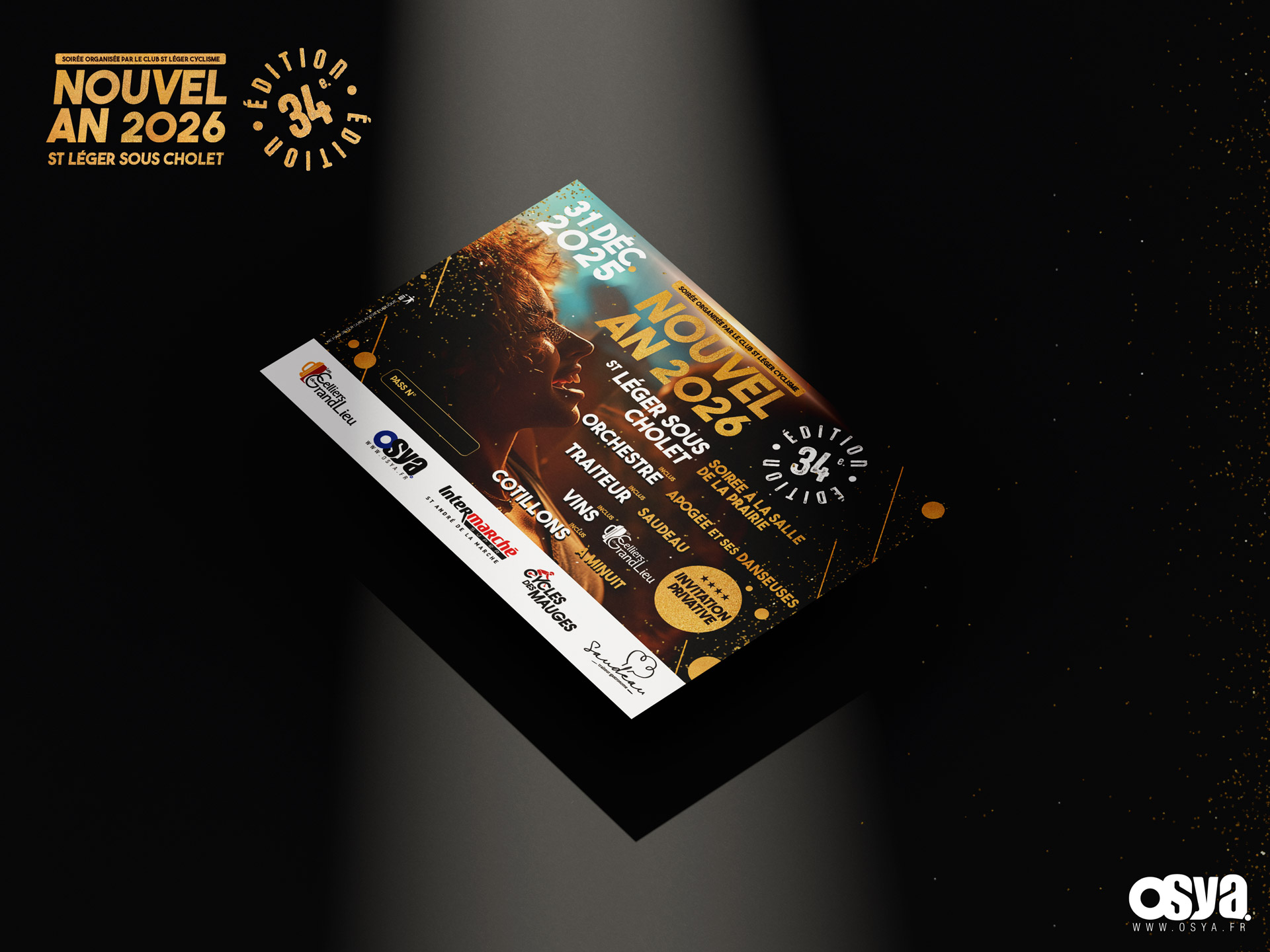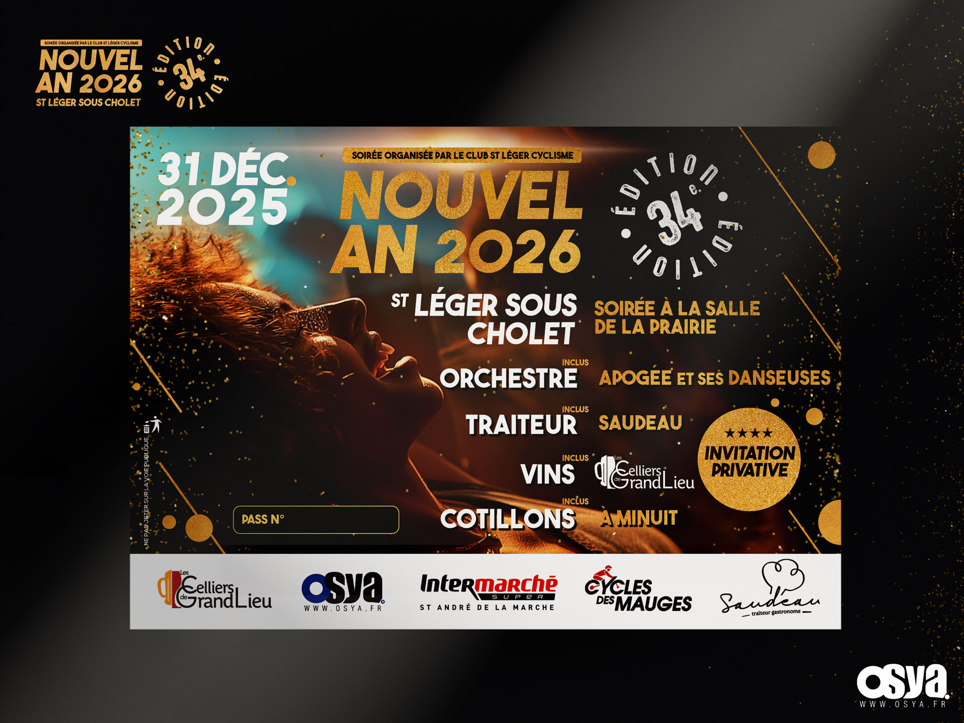 Je vous dévoile quelques créations tels que les cartes d’invitation privatives, les affiches, les menus pour la soirée du réveillon à ST LÉGER SOUS CHOLET organisée par le Club St Léger Cyclisme.
